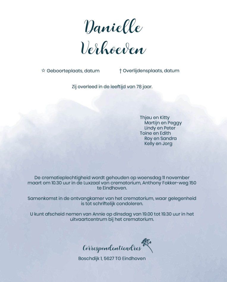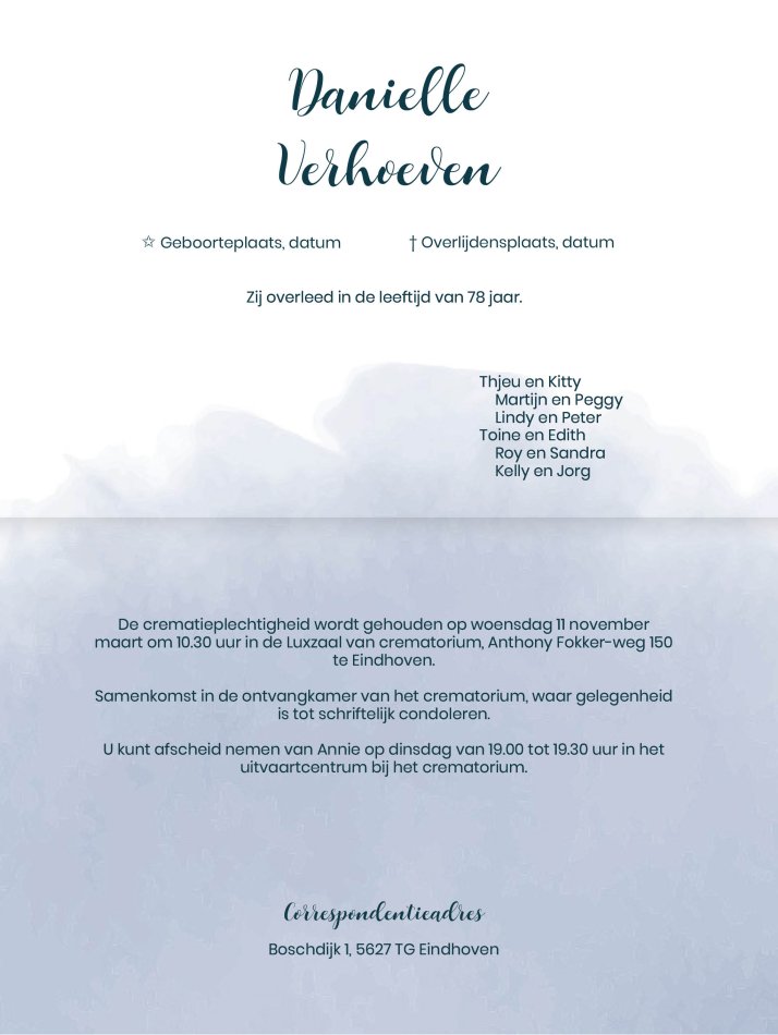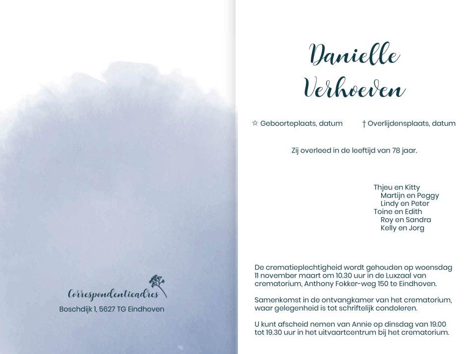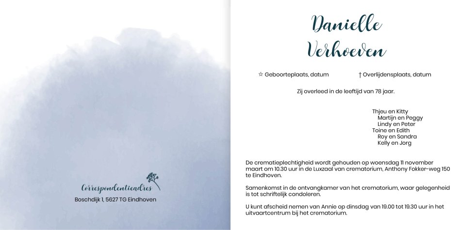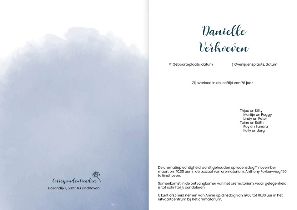 - Rouwbrief Legal: 173 x 215 mm