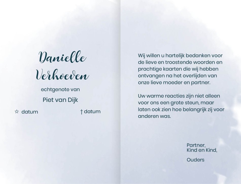 - Dankbetuiging: 173 x 115 mm
